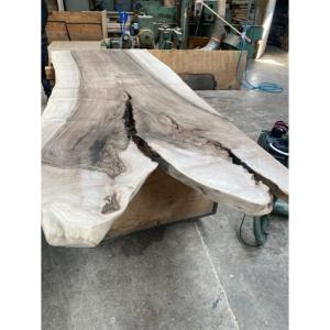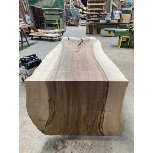 Sa longueur a permis de réaliser le plateau ainsi que le pied en conservant la continuité du fil du bois.