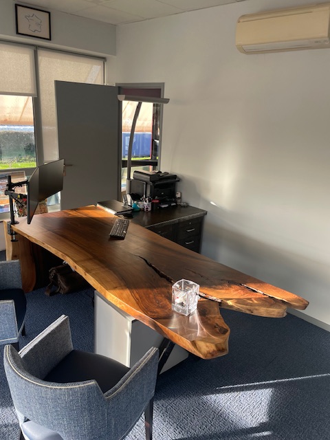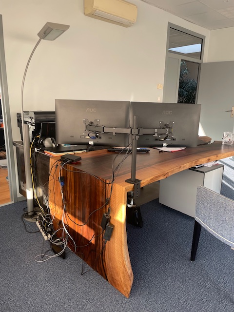 Voici un somptueux bureau réalisé avec un plateau noyer massif sans assemblage.